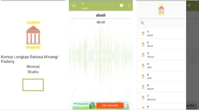 Ketika membukanya, aplikasi ini tampak memiliki kolom yang berfungsi untuk memasukkan bahasa Minang ke bahasa Indonesia ataupun sebaliknya. Tidak berhenti sampai disitu saja. Dalam Kamus Kata Minang Indonesia, juga dilengkapi dengan audio sehingga membantu Anda dalam pengucapan bahasa Minang secara tepat.