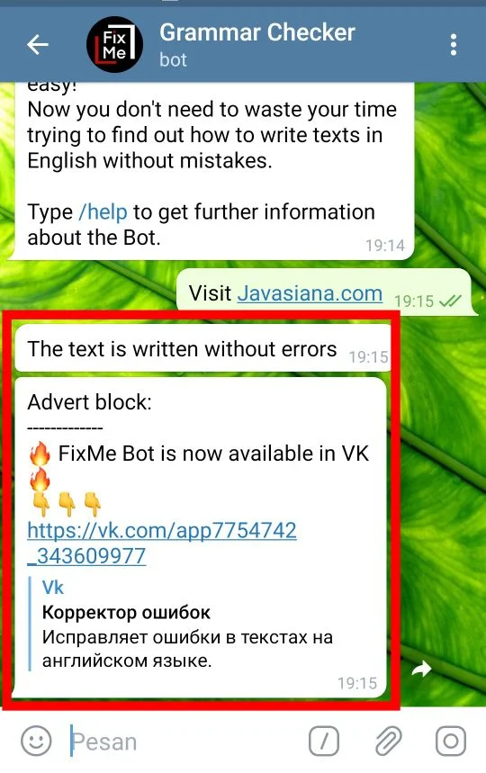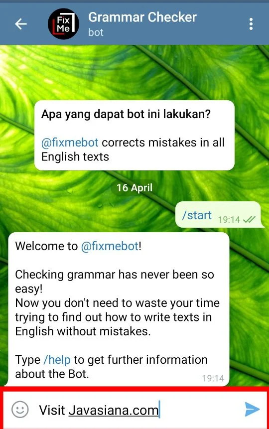 Dan melalui platforms messenger satu ini kamu dapat melakukan pemeriksaan secara cepat dan akurat dengan bantuan Bot Grammar Checker berikut ini.