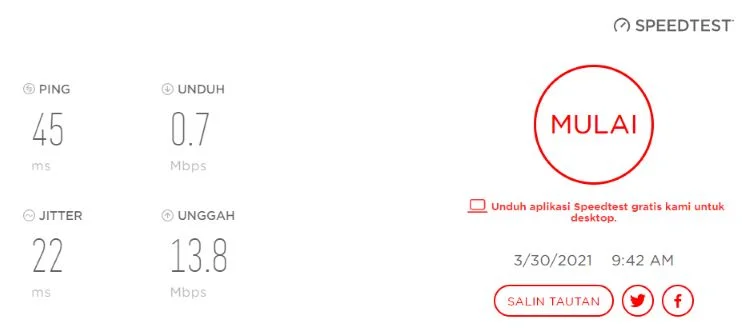- Terakhir untuk melakukan pemeriksaan kecepatan internet kamu tinggal Ketuk “Mulai”.
