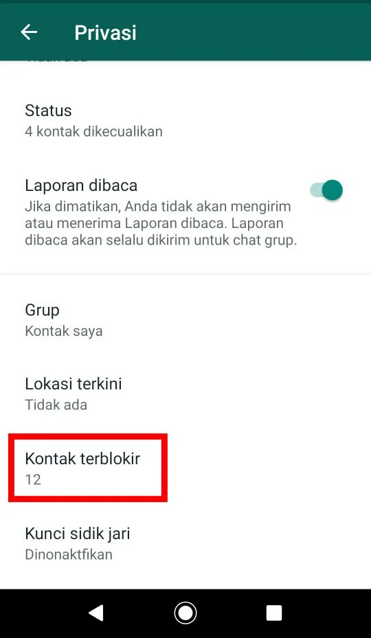 - Gulir kebawah dan Pilih pada Kontak terblokir