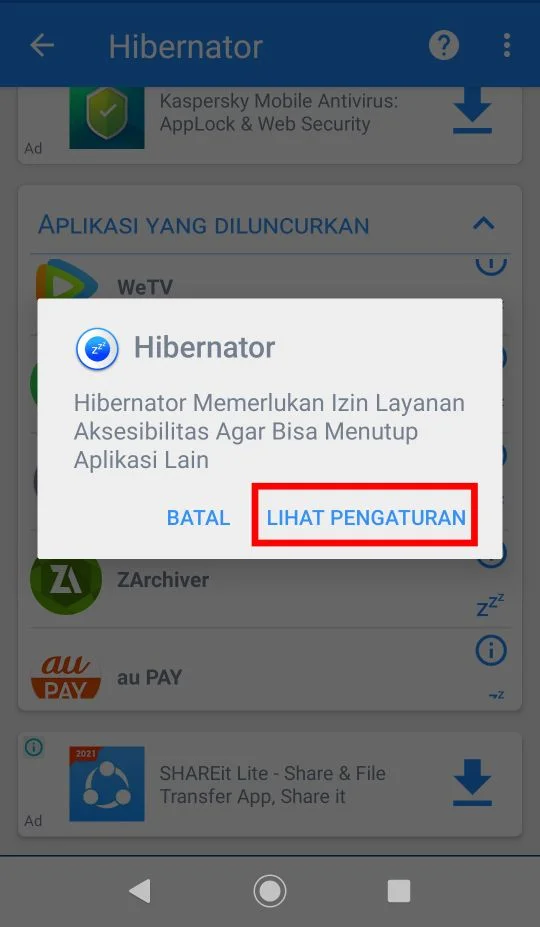 Note. jika anda dilaihkan ke Menu pengaturan HP itu artinya anda memerlukan izin layanan aksebilitas agar aplikasi tersebut bisa menutup aplikasi lainnya.