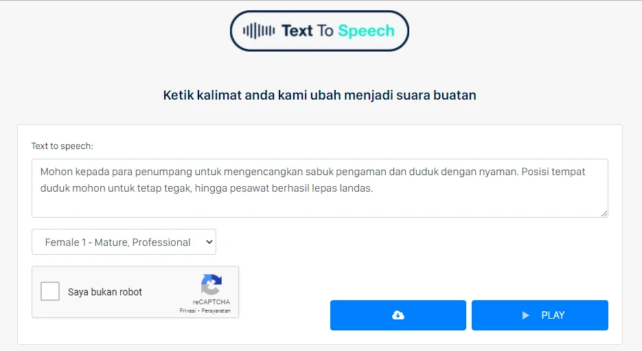 - Masukkan Teks yang mau diubah menjadi suara